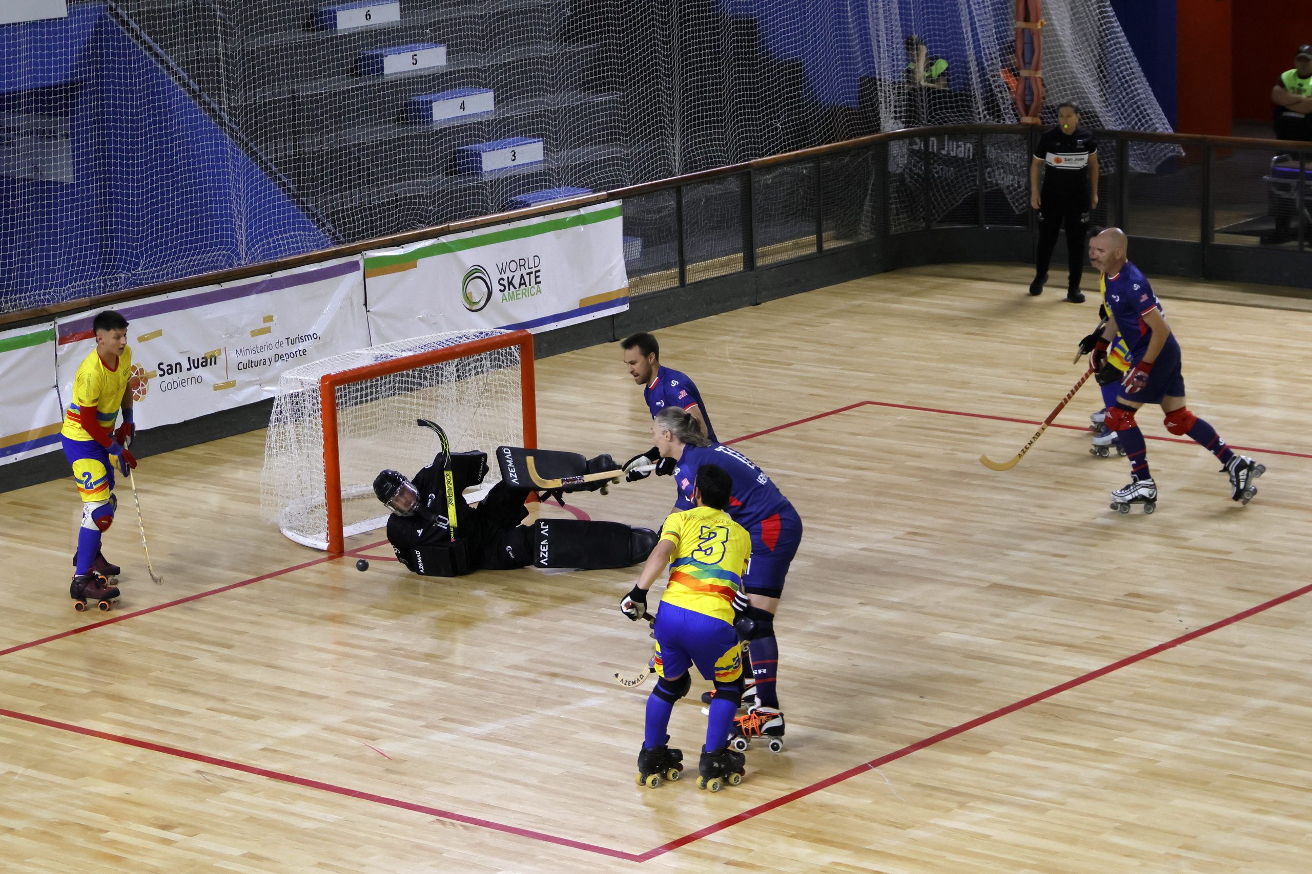 Entre los mayores varones, faltaban dos partidos para completar la serie de la ronda inicial. El quinteto de Colombia cobró revancha de lo ocurrido en la edición anterior,  goleó 12×2 a Estados Unidos y lo mandó para la casa de forma anticipada, cobrando revancha del juego por el tercer lugar el año pasado en Bogotá, cuando los norteamericanos vencieron a los cafeteros 1×0 y les privaron de ir al campeonato del mundo.
