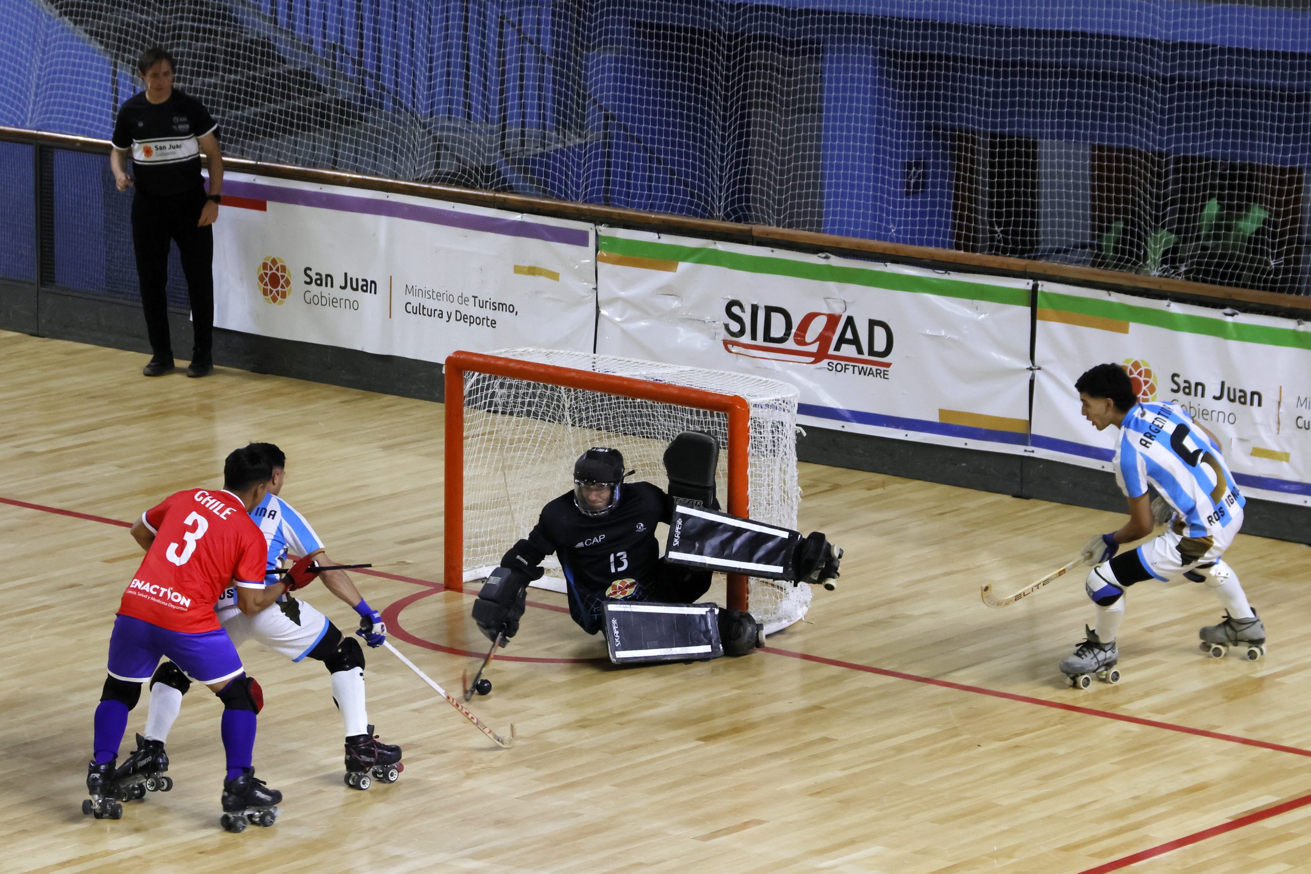 En el juego de fondo, ¡partidazo! Argentina y Chile se enfrentaron en el compromiso que muchos catalogaron como una final adelantada. El empate dejaba a los australes como líderes, mientras que los albicelestes buscaban ganar el juego y, por ende, el grupo, para no enfrentar a Colombia en la ronda semifinal. Primer tiempo igualado sin goles, gracias a la excelente actuación de los porteros Gonzalo Aguirre, argentino; y Diego García, chileno.